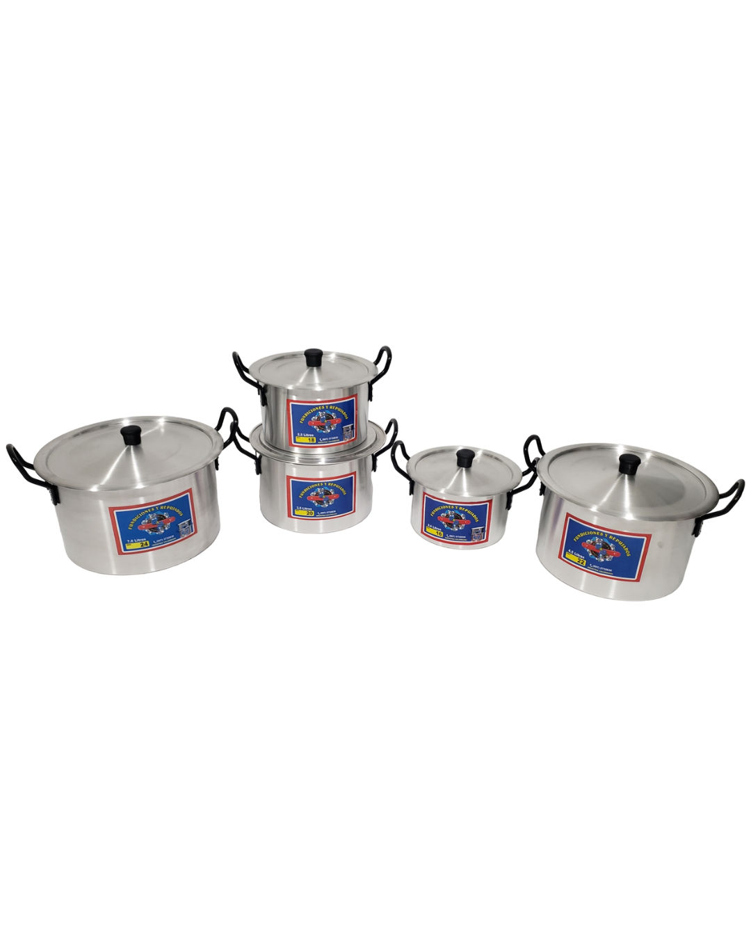 ¿Cocinas a lo grande? ¡Este es tu set! Una actualización profesional indispensable con 5 calderos que te llevan desde el mediano (2.0 L) hasta el impresionante gigante de 7.0 L.